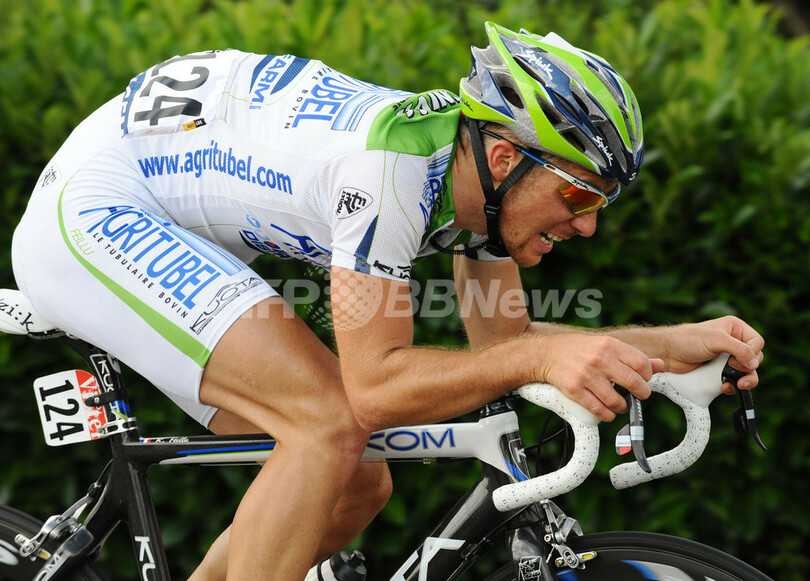 【7月8日 AFP】2008ツール・ド・フランス(2008 Tour de France)第3ステージ(サン・マロからナント、208キロメートル)。アグリチュベル(Agritubel)のロメイン・フェイーリュ(Romain Feillu、フランス)は、首位とタイム差無しの5時間05分27秒を記録して3位でステージを終え、合計タイム13時間27分05秒で総合首位に立った。