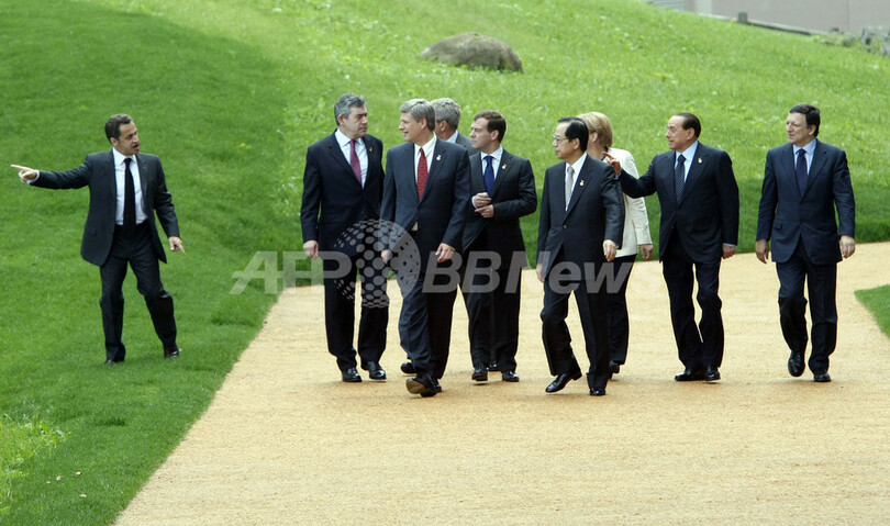 【7月8日 AFP】(写真追加)北海道洞爺湖サミット(G8 Hokkaido Toyako Summit)2日目の8日、G8首脳は共同声明を発表し原油と食糧の価格高騰への強い懸念を示した。