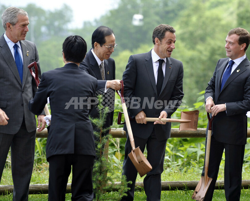 ニュース 政治・経済 洞爺湖サミット、G8首脳が記念植樹 2008年7月9日 5:00 発信地:洞爺湖/北海道 [ アジア・オセアニア 北海道 ] このニュースをシェア ‹ › ❮ 11/14 ❯ 北海道・洞爺湖畔の高級リゾートホテル「ザ・ウィンザーホテル洞爺(The Windsor Hotel Toya)」の外で、記念植樹に臨む主要8か国(G8)の各国首脳(2008年7月8日撮影)。(c)AFP/NICOLAS ASFOURI 画像作成中 ! 【7月9日 AFP】北海道洞爺湖サミット(G8 Hokkaido Toyako Summit)2日目の8日、主要8か国(G8)の各国首脳は記念撮影を前に植樹を行った。(c)AFP 政治・経済 一覧へ> メディア・報道関係・法人の方向け 写真・動画 購入のお問合せ>