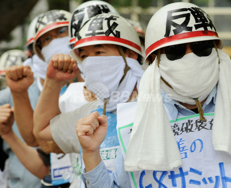 【7月9日 AFP】北海道洞爺湖サミット(G8 Hokkaido Toyako Summit)の2日目となった8日、札幌市内で左翼学生団体や労働組合員が参加する抗議デモが行われた。