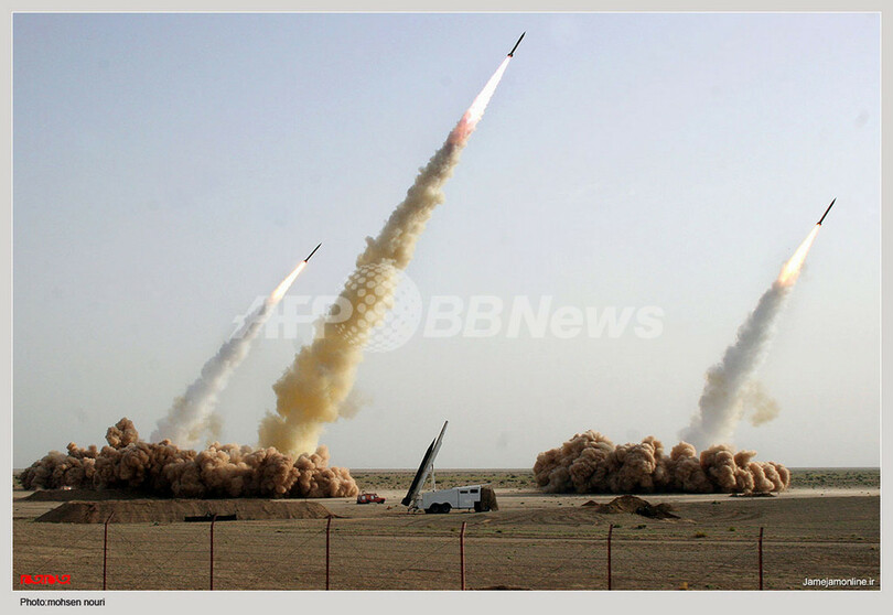 【7月10日 AFP】(写真追加)前日、中距離弾道ミサイル「シャハブ(Shahab)3」1発を含む9発を試射したイランは、ペルシャ湾での軍事演習3日目となる10日、さらに大規模な弾道ミサイルの発射実験を行った。国営通信がウェブサイト版で報じた。
