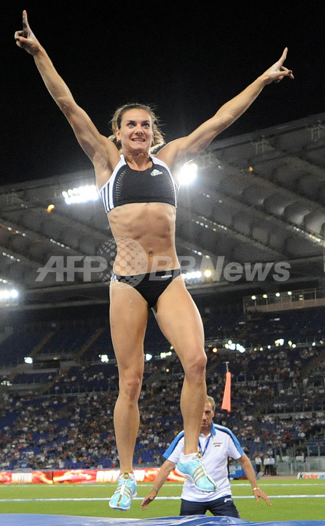 【7月12日 AFP】陸上・女子棒高跳びの世界記録保持者エレーナ・イシンバエワ(Yelena Isinbayeva、ロシア)が11日、イタリア・ローマ(Rome)で行われている陸上のゴールデン・リーグ2008(IAAF Golden League 2008)第3戦、ゴールデンガラ(Golden Gala Roma)で自身が2005年8月にヘルシンキ(Helsinki)で記録した世界記録5メートル01を更新する5メートル03の世界新を記録した。