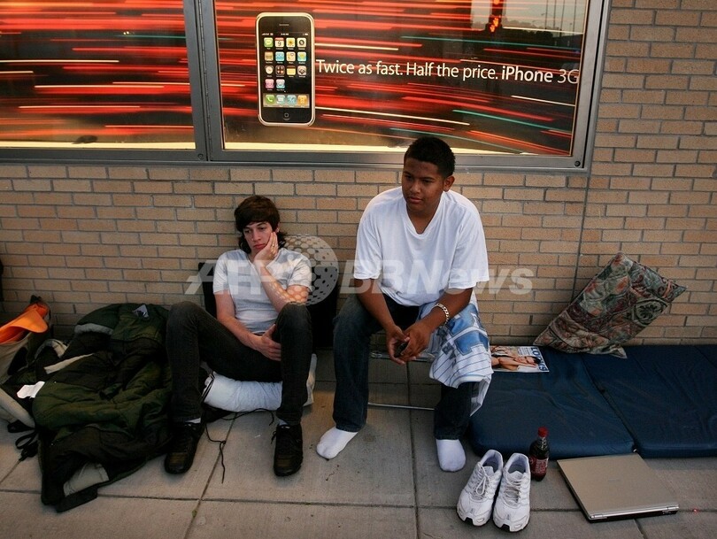 【7月13日 AFP】(写真追加)米アップル(Apple)は11日、世界各地で最新型携帯電話「iPhone 3G(アイフォーン3G)」を発売し、世界中の「ガジェット好き」が販売店に押し寄せた。手に入れた人はいずれも喜びを隠さなかったが、アップルiTunesのコンピュータートラブルのため販売開始時間が遅れ発売当日の入手をあきらめた人や、入手したもののすぐには使えない人もいた。