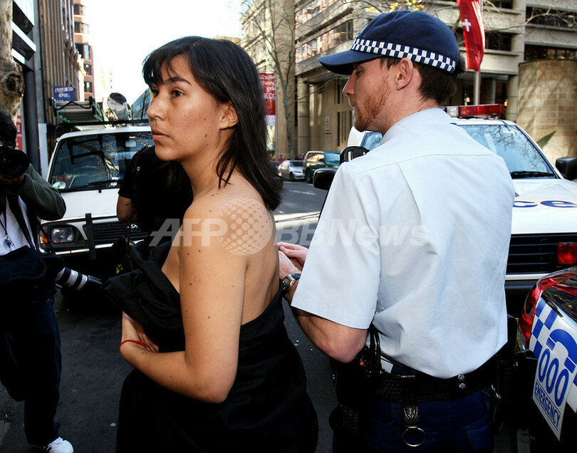 【7月14日 AFP】オーストラリアのシドニー(Sydney)にある米ファストフード大手「ケンタッキー・フライド・チキン(Kentucky Fried ChickenKFC)」の店舗前で14日、国際動物愛護団体「動物の倫理的扱いを求める人々の会(People for the Ethical Treatment of AnimalsPETA)」が、上半身裸でおりに入り、不買を呼びかける抗議行動を行った。