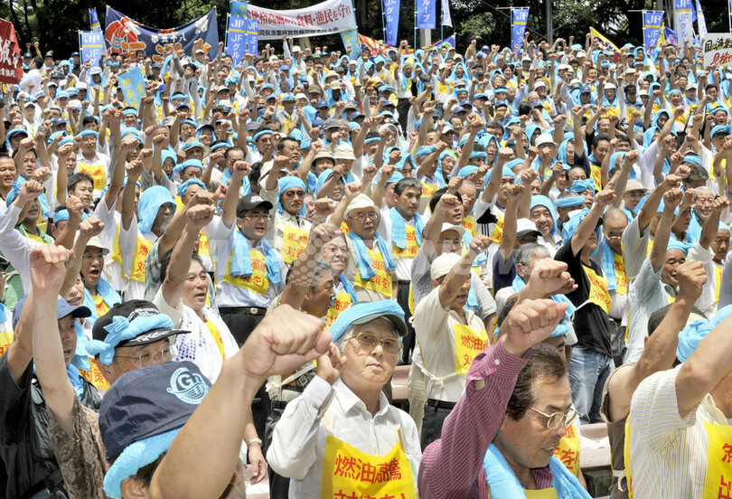 官庁街に近い都内の日比谷公園には「燃油高騰対策を!」などと書かれたゼッケンを付けた漁業者ら約3600人が集まり「漁に出るほど赤字だ」などと叫びながら燃料費補てんなどの救済策を政府に求め、農林水産省庁舎までデモ行進を行った。