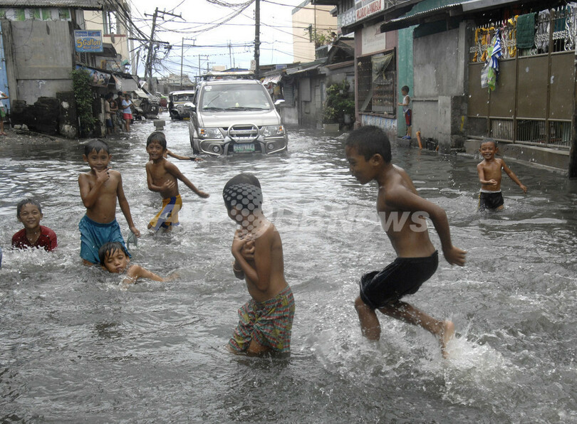 ニュース 社会 熱帯性低気圧の影響でマニラ首都圏に大雨・洪水 2008年7月20日 13:11 発信地:マニラ/フィリピン [ アジア・オセアニア フィリピン ] このニュースをシェア ‹ › ❮ 6/9 ❯ フィリピンのマニラ(Manila)首都圏北部マラボン(Malabon)市で、熱帯性低気圧の影響で冠水した道路で遊ぶ子どもたち(2008年7月16日撮影)。(c)AFP/LUIS LIWANAG 画像作成中 ! 【7月20日 AFP】フィリピンのマニラ(Manila)首都圏の各地で16日、熱帯性低気圧「ヘレン(Helen)」の通過に伴う強風や大雨の影響で、道路が冠水するなどの被害が出た。 大雨と洪水、深刻な交通渋滞から、すべての小中学校で授業が中止となった。(c)AFP 社会 一覧へ> メディア・報道関係・法人の方向け 写真・動画 購入のお問合せ>