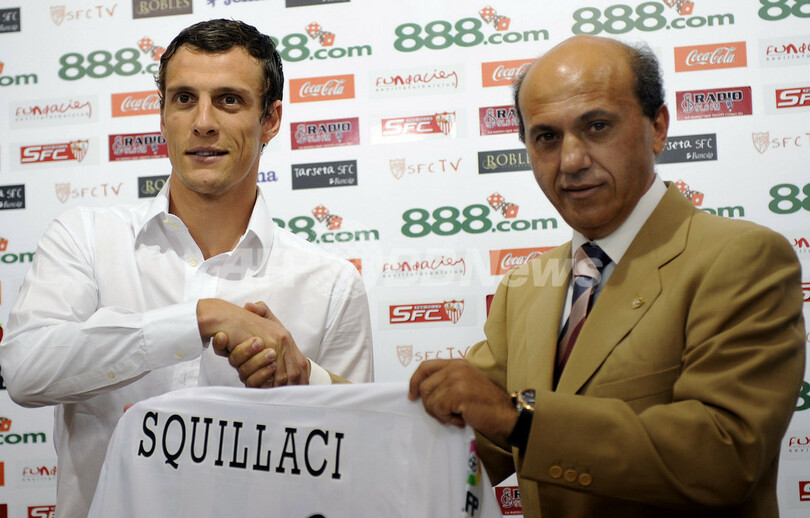 【7月18日 AFP】スペイン・リーガエスパニョーラ1部のセビージャFC(Sevilla FC)は17日、フランス・リーグ1のオリンピック・リヨン(Olympique Lyon)からセバスティアン・スキラッチ(Sebastien Squillaci)を獲得したことを発表し、入団会見を行った。