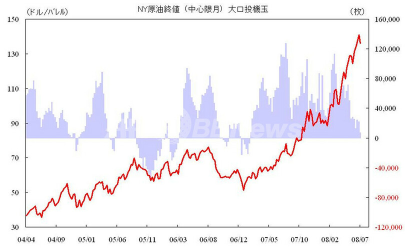 【7月17日 IDO Securities】予想外の在庫増加を嫌気して急落したNY原油だが、テクニカル面からは130ドル水準までは調整の範囲内、120ドルを割り込むまでは年初からの上昇トレンドは崩れないと見ることが可能だ。CFTC建玉明細(7/8現在)によると、大口投機玉は、原油が7,066枚の買い越し。マーケット監督強化の動きもあり、3月のピーク(113,307枚の買い越し)から整理されている状況だ。それにも関わらず、高値圏を維持しているのはインデックスファンドの買い居座り継続が一因と考えられるが、こういった環境下、地政学リスクやハリケーン到来などの突発的な強気要因が入ると、短期筋を中心とする大口投機玉が、再参入しやすい地合となっている。