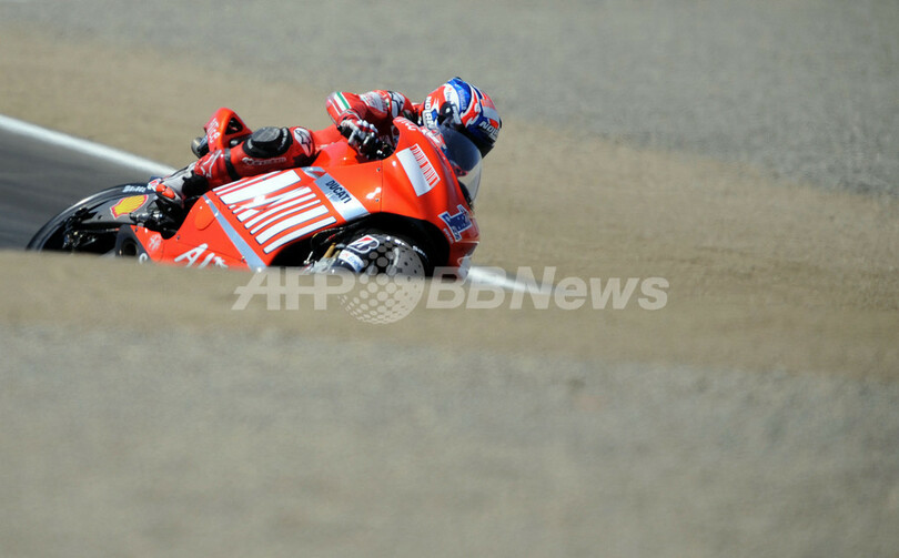 【7月19日 AFP】世界ロードレース選手権(WGP 2008)第11戦・米国GP・MotoGPクラス、フリー走行2回目。ドゥカティ(Ducati)のケーシー・ストーナー(Casey Stoner)は、29周を走行しトップタイムとなるベストラップ1分21秒826を記録した。
