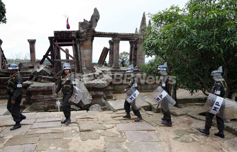 現在、11世紀のヒンズー教寺院遺跡「プレアビヒア寺院(Preah Vihear Temple)」に続く坂道にある小さな仏塔の周辺に、約500人のタイ軍部隊と1000人を優に超えるカンボジア軍部隊が配備されている。プレアビヒア寺院は今月7日にユネスコ(UNESCO)世界遺産に登録されたばかり。