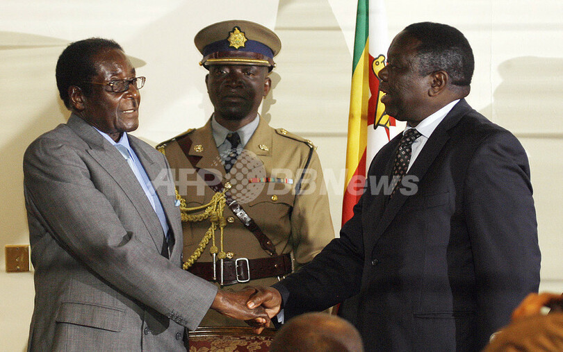 首都ハラレ(Harare)で行われた式典では、長らく仲介役を務めてきた南アフリカのターボ・ムベキ(Thabo Mbeki)大統領が見守る中、ムガベ大統領とツァンギライ氏が握手を交わし、ジンバブエは歴史上最もつらい時期を経験したが、今は協力していく時だと語った。