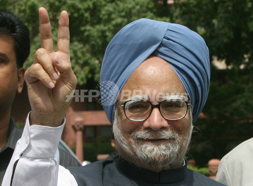 ニュース 政治・経済 インド下院、内閣信任案を可決 米との原子力協定前進へ 2008年7月23日 8:43 発信地:ニューデリー/インド [ アジア・オセアニア インド ] このニュースをシェア ‹ › ❮ 8/8 ❯ インド・ニューデリー(New Delhi)で、内閣信任案の審議のために国会に到着し、Vサインをするマンモハン・シン(Manmohan Singh)首相(2008年7月22日撮影)。(c)AFP/RAVEENDRAN 画像作成中 ! 【7月23日 AFP】(写真追加)インド下院は22日、マンモハン・シン(Manmohan Singh)首相が提出した内閣信任案を賛成275、反対256のわずかな差で可決した。シン首相が政権維持に成功したことで、米印原子力協力協定は発効に向け大きく前進するとみられる。(c)AFP 政治・経済 一覧へ> メディア・報道関係・法人の方向け 写真・動画 購入のお問合せ>