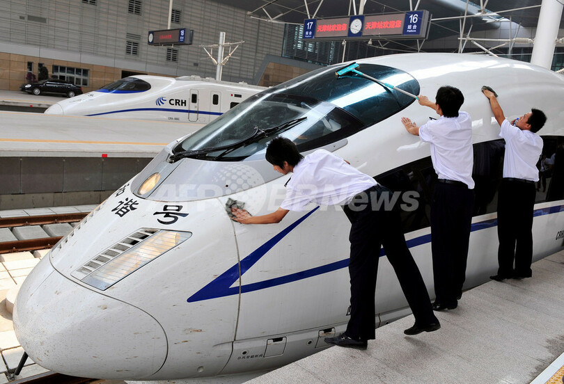 ニュース 政治・経済 北京-天津を結ぶ中国の高速鉄道、8月1日開業 2008年7月23日 11:54 発信地:天津/中国 [ 中国・台湾 中国 ] このニュースをシェア ‹ › ❮ 17/17 ❯ 中国の天津(Tianjin)にある高速鉄道の駅で新幹線を清掃するスタッフ(2008年7月22日撮影)。(c)AFP/TEH Eng Koon 画像作成中 ! 【7月23日 AFP】(一部更新)中国の天津(Tianjin)と北京(Beijing)を結ぶ最新高速鉄道が8月1日より開通する。走行距離は115キロ。運転速度は中国で最高の時速394.3キロを記録している。北京五輪(Beijing Olympic Games)開催による交通渋滞と大気汚染を軽減するため、新しい移動手段として設営された。(c)AFP 政治・経済 一覧へ> メディア・報道関係・法人の方向け 写真・動画 購入のお問合せ>
