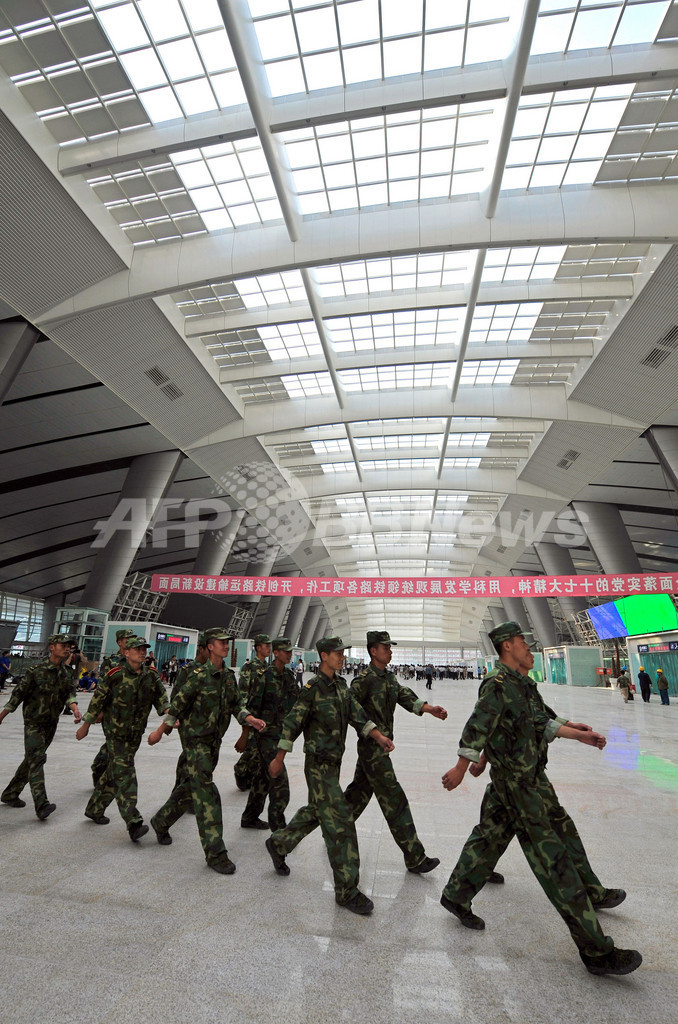 ニュース 政治・経済 北京-天津を結ぶ中国の高速鉄道、8月1日開業 2008年7月23日 11:54 発信地:天津/中国 [ 中国・台湾 中国 ] このニュースをシェア ‹ › ❮ 5/17 ❯ 中国の北京(Beijing)にある高速鉄道の駅構内を行進する兵士たち(2008年7月22日撮影)。(c)AFP/TEH Eng Koon 画像作成中 ! 【7月23日 AFP】(一部更新)中国の天津(Tianjin)と北京(Beijing)を結ぶ最新高速鉄道が8月1日より開通する。走行距離は115キロ。運転速度は中国で最高の時速394.3キロを記録している。北京五輪(Beijing Olympic Games)開催による交通渋滞と大気汚染を軽減するため、新しい移動手段として設営された。(c)AFP 政治・経済 一覧へ> メディア・報道関係・法人の方向け 写真・動画 購入のお問合せ>