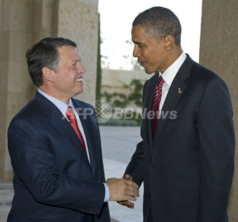その後、オバマ氏はヨルダンのアブドラ2世(King Abdullah II)国王と会談し、夕食をともにした。(c)AFP/Stephen Collinson