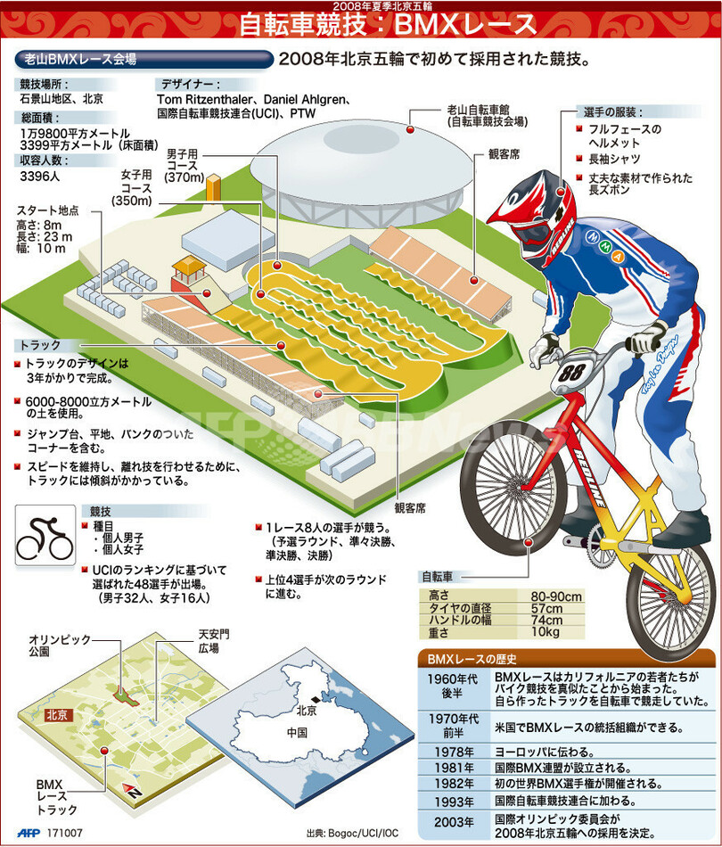 スポーツ 自転車競技 図解 【図解】北京五輪種目・BMX 2008年7月24日 2:28 発信地:北京/中国 [ 中国・台湾 中国 ] このニュースをシェア (c)AFP 【7月24日 AFP】図は、2008年夏季北京五輪の競技種目、BMXについて示したもの。(c)AFP<ニュース解説画像一覧へ> 自転車競技 一覧へ> メディア・報道関係・法人の方向け 写真・動画 購入のお問合せ>