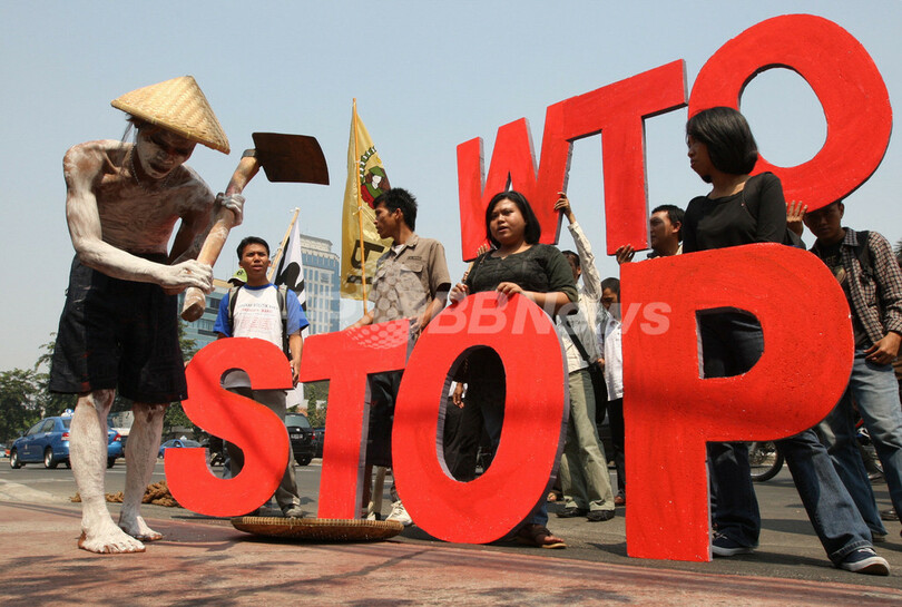 ニュース 政治・経済 インドネシアでWTO閣僚会合に抗議のパフォーマンス 2008年7月24日 10:18 発信地:ジャカルタ/インドネシア [ アジア・オセアニア インドネシア ] このニュースをシェア ‹ › ❮ 2/2 ❯ スイス・ジュネーブ(Geneva)で世界貿易機関(World Trade Organization、 WTO)閣僚会合が開かれる中、インドネシア・ジャカルタ(Jakarta)でWTOに対する抗議活動を行う人たち(2008年7月21日撮影)。(c)AFP 画像作成中 ! 【7月24日 AFP】スイス・ジュネーブ(Geneva)で開かれた世界貿易機関(World Trade Organization、 WTO)の閣僚会合が開かれる中、インドネシア・ジャカルタ(Jakarta)で21日、WTOに対する抗議活動を行う地元住民ら。(c)AFP 政治・経済 一覧へ> メディア・報道関係・法人の方向け 写真・動画 購入のお問合せ>