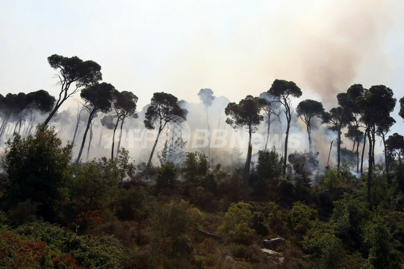 【7月24日 AFP】レバノンの首都ベイルート(Beirut)東部郊外のアレー(Aley)の松林で22日、山火事が発生した。レバノン軍および、国連(UN)とキプロスの航空機も参加して消火活動が行われ、23日には延焼を食い止めた。