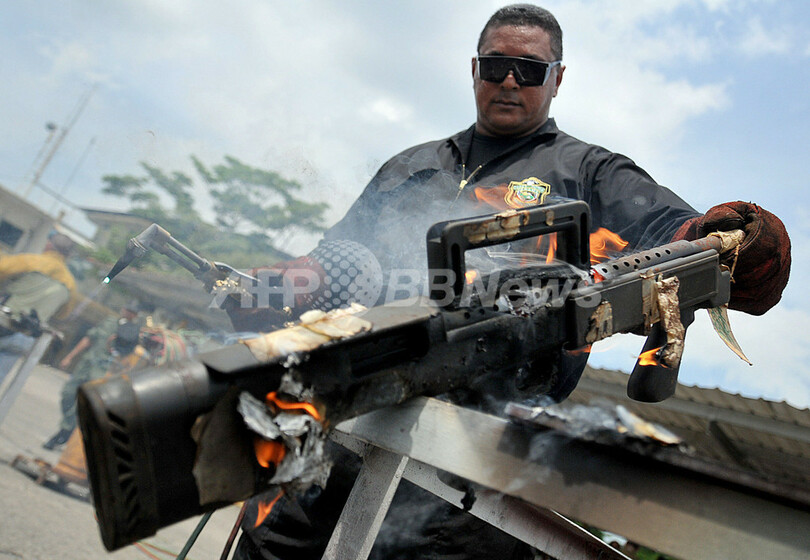 ニュース 社会 パナマで押収銃器大量処分、ホンジュラス警察 2008年7月24日 21:43 発信地:パナマ市/パナマ [ 中南米 パナマ ] このニュースをシェア ‹ › ❮ 1/7 ❯ パナマの首都パナマ市(Panama City)で、押収品のライフル銃を破壊するホンジュラスの警察官(2008年7月23日撮影)。(c)AFP/Elmer MARTINEZ 画像作成中 ! 【7月24日 AFP】中米パナマの首都パナマ市(Panama City)で23日、ホンジュラス警察当局が過去2、3年間に麻薬密売人や犯罪組織から押収した口径の異なる銃986丁の破壊処分を行った。(c)AFP 社会 一覧へ> メディア・報道関係・法人の方向け 写真・動画 購入のお問合せ>