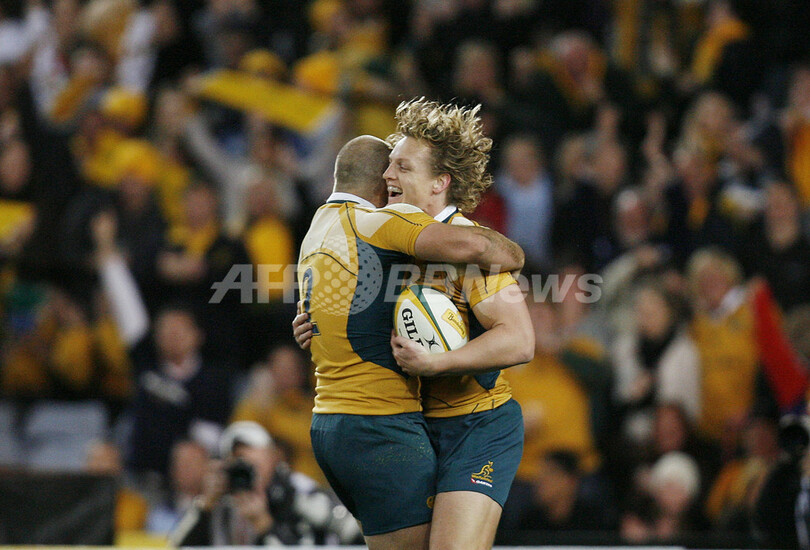 スポーツ ラグビー ワラビーズ オールブラックスに勝利し2連勝 2008年7月26日 22:07 発信地:シドニー/オーストラリア [ アジア・オセアニア オーストラリア ] このニュースをシェア ‹ › ❮ 7/8 ❯ トライを決めてチームメイトのステファン・ムーア(%%Stephen Moore%%)から祝福を受けるオーストラリア(ワラビーズ)のライアン・クロス(%%Ryan Cross%%、右)。(2008年7月26日撮影)(c)AFP/Torsten BLACKWOOD 画像作成中 ! 【7月26日 AFP】ラグビー、トライネーションズ2008(Tri-Nations 2008)。オーストラリア(ワラビーズWallabies)はニュージーランド(オールブラックスAll Blacks)と対戦し34-19で勝利を収め、2連勝を飾った。(c)AFP ラグビー 一覧へ> メディア・報道関係・法人の方向け 写真・動画 購入のお問合せ>