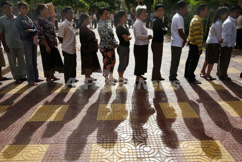 ニュース 政治・経済 カンボジア下院選、与党人民党が優勢 2008年7月27日 15:28 発信地:プノンペン/カンボジア [ アジア・オセアニア カンボジア ] このニュースをシェア ‹ › ❮ 1/14 ❯ カンボジアの首都プノンペン(Phnom Penh)の下院選挙の投票所で列を作って待つ人々(2008年7月27日撮影)。(c)AFP/TANG CHHIN SOTHY 画像作成中 ! 【7月27日 AFP】27日、カンボジア下院選挙の投票が行われた。23年間にわたり権力を掌握してきたフン・セン(Hun Sen)首相のカンボジア人民党(Cambodian People's Party、CPP)の勝利が確実視されている。(c)AFP 政治・経済 一覧へ> メディア・報道関係・法人の方向け 写真・動画 購入のお問合せ>