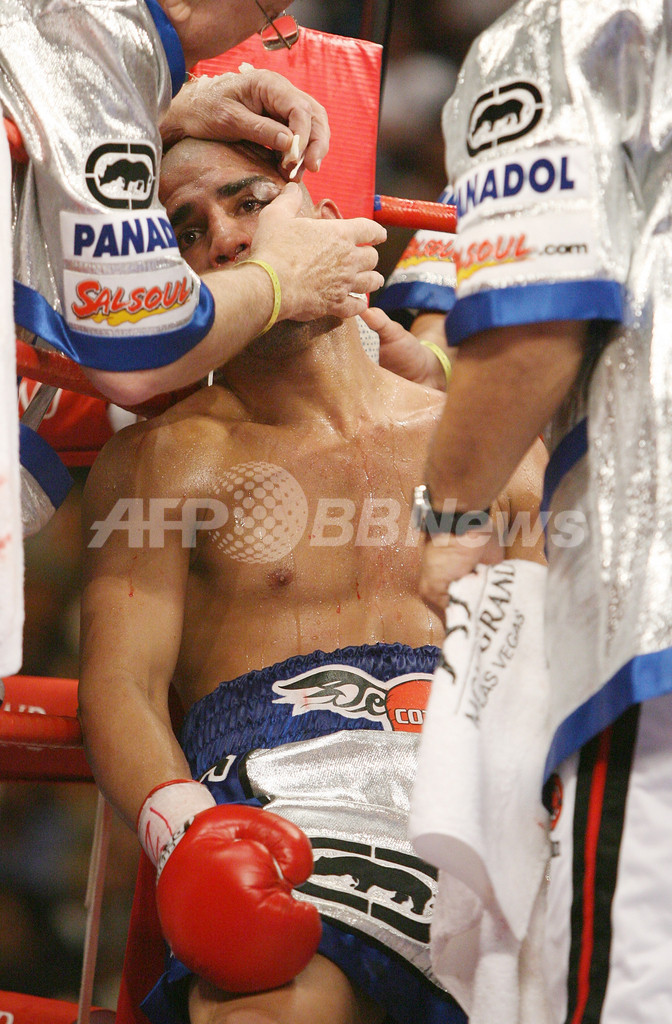 スポーツ スポーツ その他 マルガリート 11ラウンドTKOでWBA世界ウェルター級新王者に 2008年7月27日 16:03 発信地:ラスベガス/米国 [ 北米 米国 ] このニュースをシェア ‹ › ❮ 2/10 ❯ ラウンド間に治療を受けるミゲル・コット。(2008年7月26日撮影)(c)AFP/Getty Images/Ethan Miller 画像作成中 ! 【7月27日 AFP】ボクシング、WBA世界ウェルター級タイトルマッチ。挑戦者アントニオ・マルガリート(Antonio Margarito Montiel、メキシコ)は、王者のミゲル・コット(Miguel Cotto、プエルトリコ)と対戦。マルガリートは11ラウンドTKO勝利を収め、新王者に輝いた。(c)AFP/Getty Images スポーツ その他 一覧へ> メディア・報道関係・法人の方向け 写真・動画 購入のお問合せ>