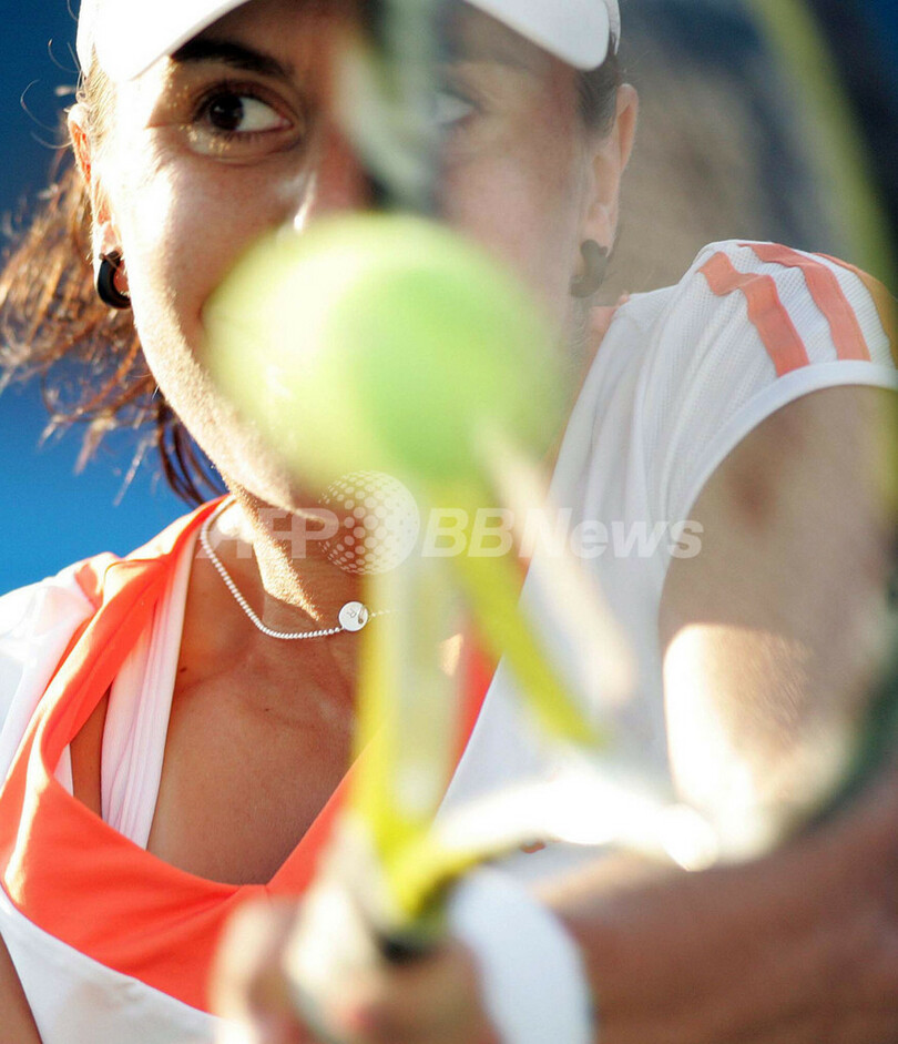 【7月28日 AFP】女子テニス、バンカ・コーペル・スロベニア・オープン2008(Banka Koper Slovenia Open 2008)シングルス決勝。大会第8シードのサラ・エラーニ(Sara Errani、イタリア)は、大会第4シードのアナベル・メディナ・ガリゲス(Anabel Medina Garrigues、スペイン)と対戦。エラーニはセットカウント2-0(6-3、6-3)のストレートで勝利を収め優勝を果たした。(c)AFP/Getty Images