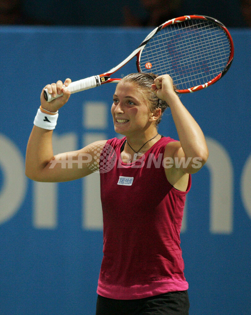 【7月28日 AFP】女子テニス、バンカ・コーペル・スロベニア・オープン2008(Banka Koper Slovenia Open 2008)シングルス決勝。大会第8シードのサラ・エラーニ(Sara Errani、イタリア)は、大会第4シードのアナベル・メディナ・ガリゲス(Anabel Medina Garrigues、スペイン)と対戦。エラーニはセットカウント2-0(6-3、6-3)のストレートで勝利を収め優勝を果たした。(c)AFP/Getty Images