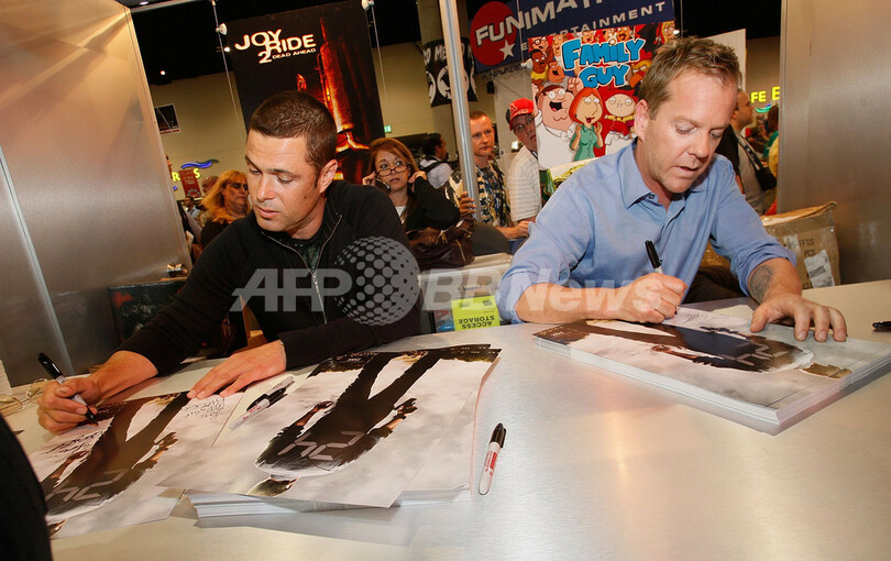 2日目の25日には、俳優キーファー・サザーランド(Kiefer Sutherland)をはじめ、米テレビ局FOXのドラマ「24(Twenty Four)」の出演者らが登場。トークイベントやサイン会に臨んだ。(c)AFP/Getty Images