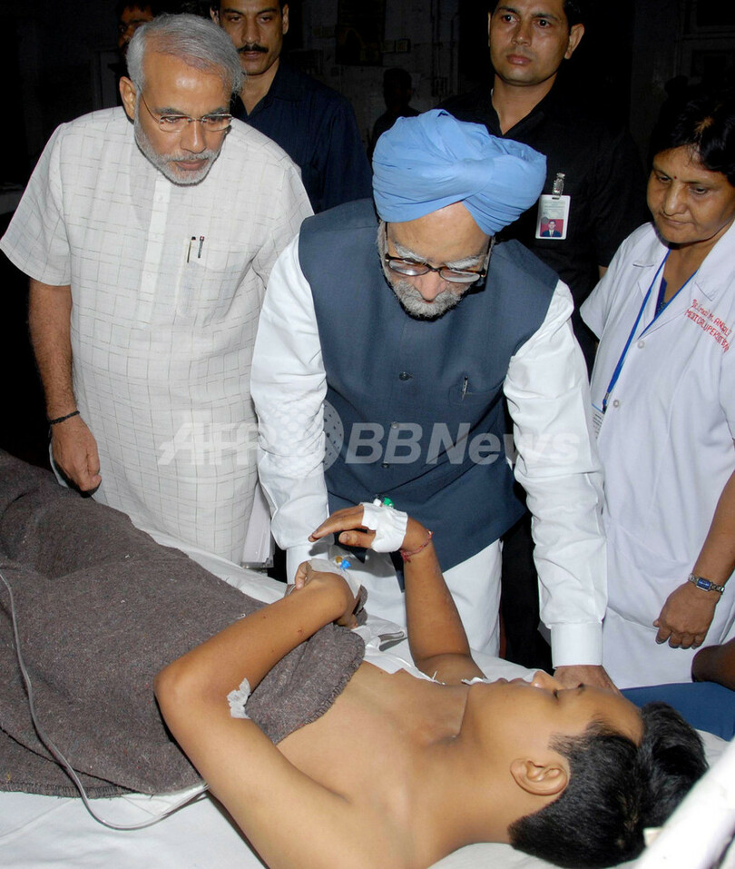 【7月28日 AFP】インドのマンモハン・シン(Manmohan Singh)首相と西部グジャラート(Gujarat)州のナレンドラ・モディ(Narendra Modi)州首相らは28日、同州アーメダバード(Ahmedabad)で発生した16件の連続爆破事件の被害者を見舞った。