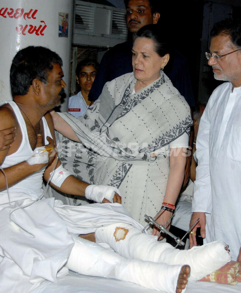 【7月28日 AFP】インドのマンモハン・シン(Manmohan Singh)首相と西部グジャラート(Gujarat)州のナレンドラ・モディ(Narendra Modi)州首相らは28日、同州アーメダバード(Ahmedabad)で発生した16件の連続爆破事件の被害者を見舞った。