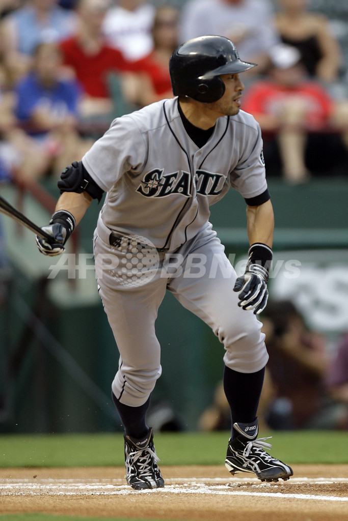 スポーツ 野球 イチロー レンジャーズ戦で日米通算3000本安打達成 2008年7月30日 14:19 発信地:アーリントン/米国 [ 北米 米国 ] このニュースをシェア ‹ › ❮ 4/7 ❯ テキサス・レンジャーズ戦で第1打席に日米通算3000安打を達成するシアトル・マリナーズのイチロー。(2008年7月29日撮影)(c)AFP/Getty Images/Layne Murdoch 画像作成中 ! 【7月30日 AFP】(一部更新)08MLB、シアトル・マリナーズ(Seattle Mariners)のイチロー(Ichiro Suzuki)は、29日に行われたテキサス・レンジャーズ(Texas Rangers)戦の第1打席で左翼に安打を放ち日米通算3000本安打を達成するなど、2安打1打点を記録した。試合は10-11でマリナーズが敗れた。(c)AFP/Getty Images 野球 一覧へ> メディア・報道関係・法人の方向け 写真・動画 購入のお問合せ>
