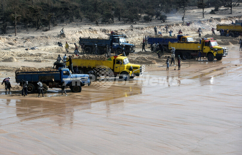 この2年間で検挙できたのは84人。たいていは1-2か月の短い禁固刑と10万CFA(約2万5000円)から100万CFA(約25万円)の罰金が課されるというが、再犯率は高いという。砂を建設業者に売ると最大8万CFA(約2万円)という破格の月収が得られる。それだけ砂のニーズは高いのだ。(c)AFP/Julie Vandal