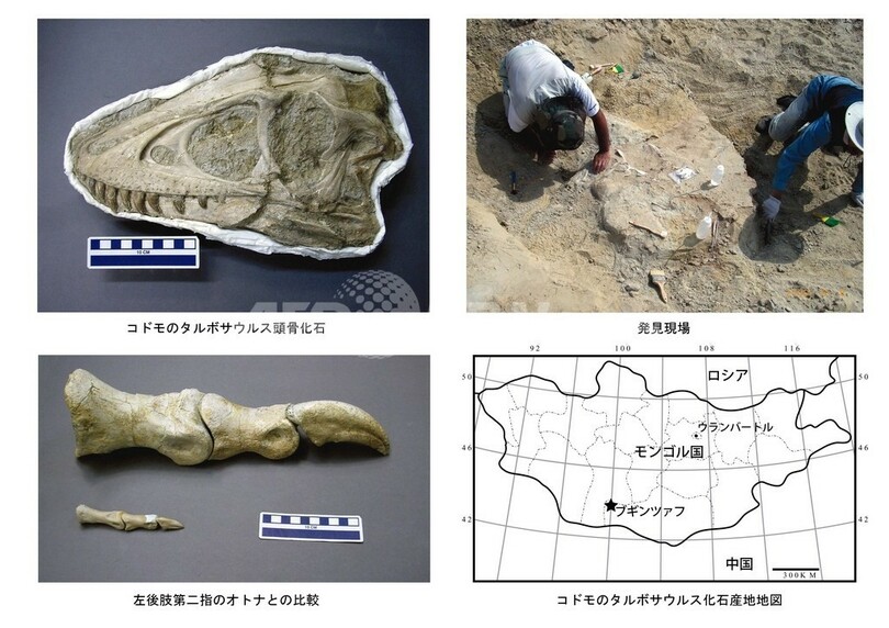 【7月31日 AFP】モンゴルのゴビ砂漠(Gobi Desert)でモンゴル科学アカデミー古生物学センター(Mongolian Academy of Sciences)と恐竜化石の共同発掘調査を行っている林原自然科学博物館は24日、7000年前のタルボザウルスの子どもの化石を発見したと発表した。