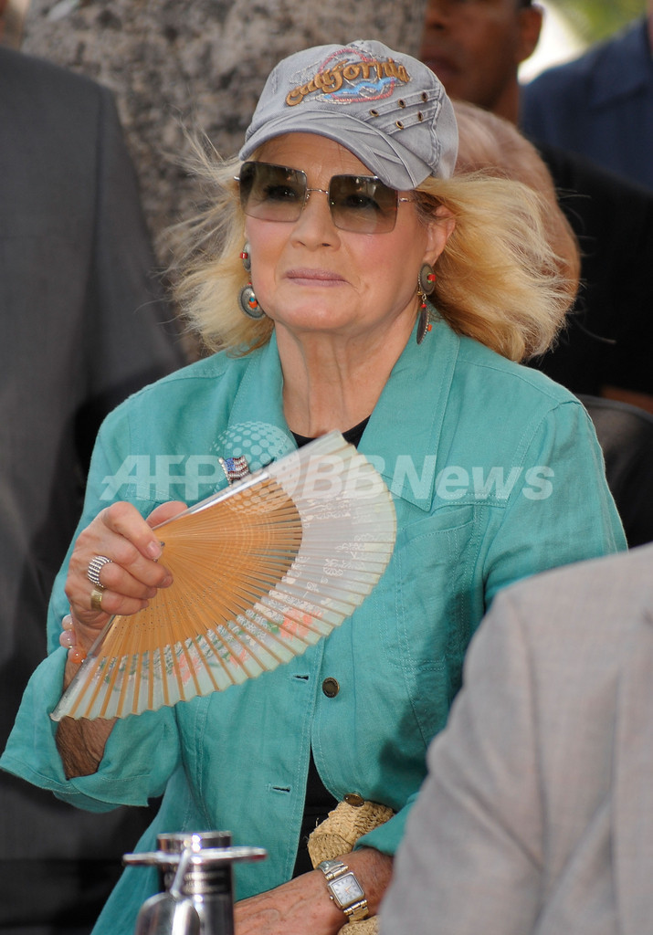 俳優チャールズ・ダーニング(Charles Durning)のハリウッドの殿堂「ウォーク・オブ・フェーム(Hollywood Walk of Fame)」入り記念セレモニーに出席する女優のアンジー・ディキンソン(Angie Dickinson、2008年7月31日撮影)。(c)AFP/Getty Images/Charley Gallay