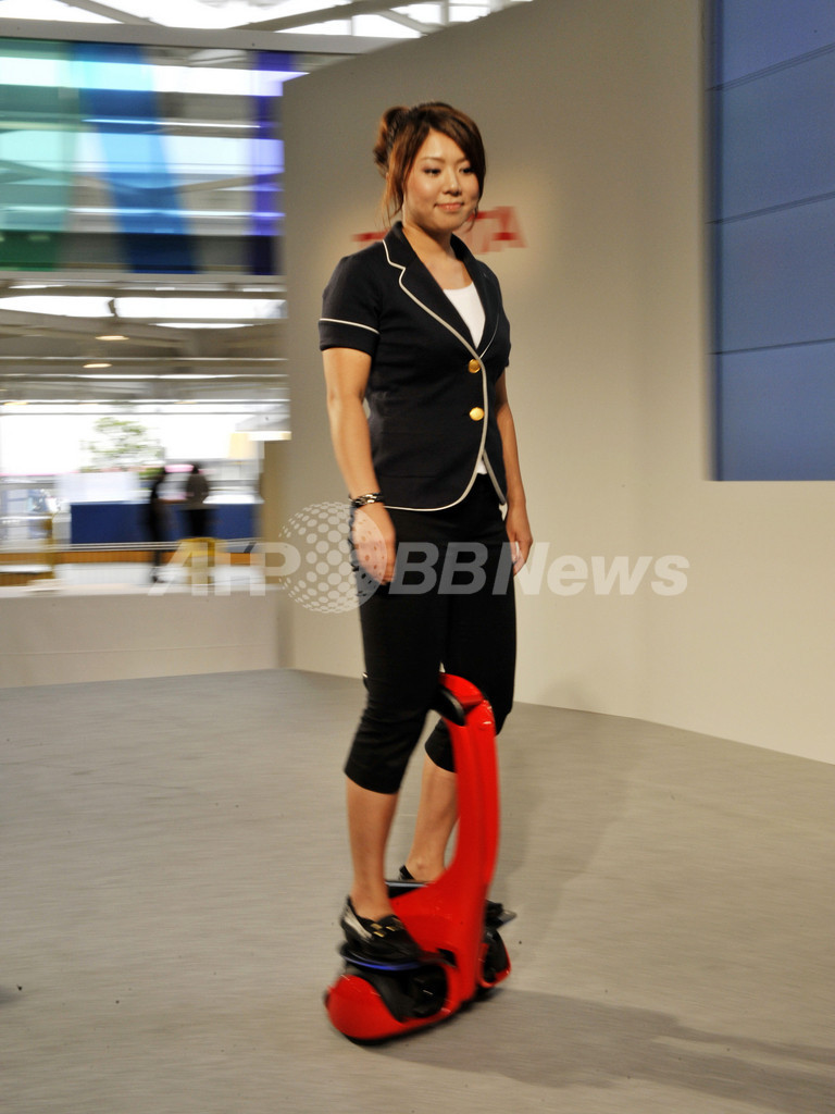 同社が「パーソナル移動支援ロボット」としている。体重を移動させることで立ったまま前進やバック、旋回させることができる。最高時速6キロで、1時間の充電で最大10キロ走行できる。