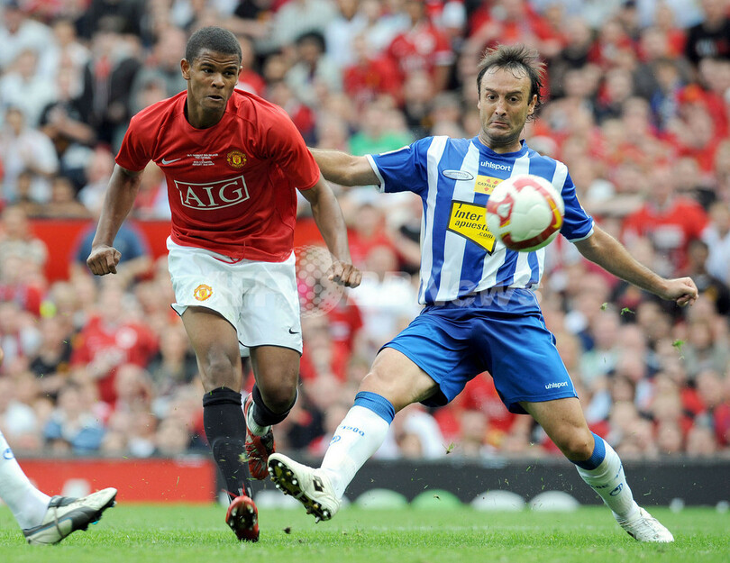 試合は後半37分にギグスのパスに抜け出したキャンベルがマーカーをかわして決勝点を挙げ、マンチェスター・ユナイテッドはスールシャールの引退記念試合を白星で飾っている。(c)AFP/Ian Whittell