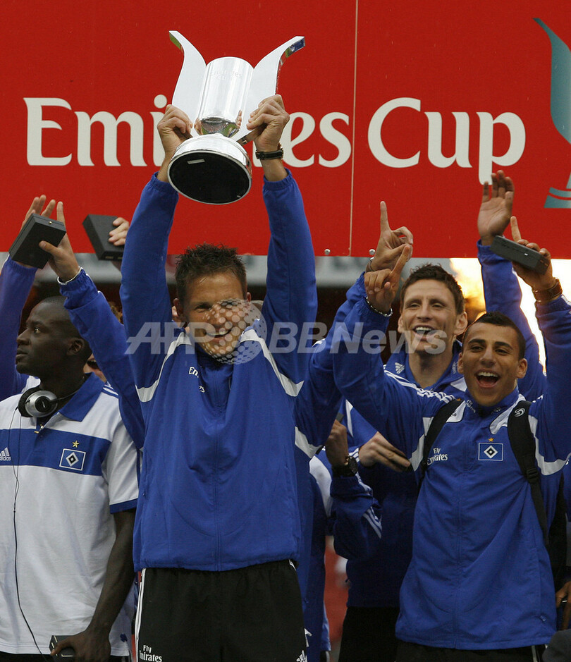 スポーツ サッカー ハンブルガー ユベントス下しエミレーツカップ制す 2008年8月4日 8:35 発信地:ロンドン/英国 [ ヨーロッパ 英国 ] このニュースをシェア ‹ › ❮ 4/13 ❯ エミレーツカップ2008を制しトロフィーを掲げるハンブルガーSVのフランク・ロスト(%%Frank Rost%%、中央)。(2008年8月3日撮影)(c)AFP/IAN KINGTON 画像作成中 ! 【8月4日 AFP】(写真追加)サッカー親善試合、エミレーツカップ2008(Emirates Cup 2008)、ハンブルガーSV(Hamburger SV)対ユベントス(Juventus)。試合はハンブルガーが3-0で勝利を収め、獲得ポイントを計7ポイントに伸ばし優勝を果たした。(c)AFP サッカー 一覧へ> メディア・報道関係・法人の方向け 写真・動画 購入のお問合せ>