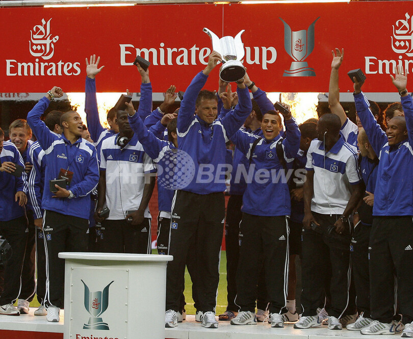 スポーツ サッカー ハンブルガー ユベントス下しエミレーツカップ制す 2008年8月4日 8:35 発信地:ロンドン/英国 [ ヨーロッパ 英国 ] このニュースをシェア ‹ › ❮ 2/13 ❯ エミレーツカップ2008を制しトロフィーを掲げるハンブルガーSVのフランク・ロスト(%%Frank Rost%%、中央)。(2008年8月3日撮影)(c)AFP/IAN KINGTON 画像作成中 ! 【8月4日 AFP】(写真追加)サッカー親善試合、エミレーツカップ2008(Emirates Cup 2008)、ハンブルガーSV(Hamburger SV)対ユベントス(Juventus)。試合はハンブルガーが3-0で勝利を収め、獲得ポイントを計7ポイントに伸ばし優勝を果たした。(c)AFP サッカー 一覧へ> メディア・報道関係・法人の方向け 写真・動画 購入のお問合せ>