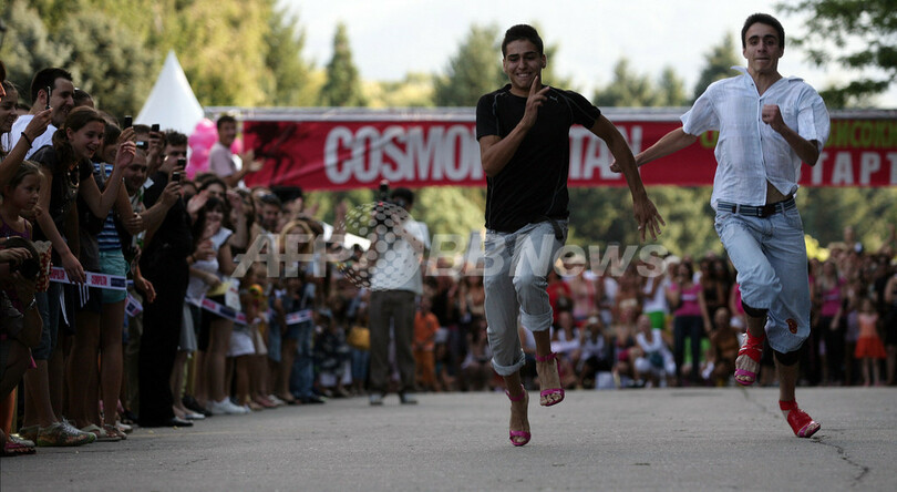 ニュース ライフ こぼれ話 9センチのハイヒールで短距離走大会、目指すは賞金25万円 2008年8月4日 10:02 発信地:ソフィア/ブルガリア [ ヨーロッパ ブルガリア ] このニュースをシェア ‹ › ❮ 3/5 ❯ ブルガリアのソフィア(Sofia)で開催されたハイヒール短距離走大会「Stiletto Run」にジョークで出場した少年たち。もちろん9センチのハイヒールで激走(2008年8月2日撮影)。(c)AFP/BORYANA KATSAROVA 画像作成中 ! 【8月4日 AFP】ブルガリアの首都ソフィア(Sofia)で2日、ハイヒールを履いた女性による短距離走大会「Stiletto Run(スティレット・ラン)」が開催された。競技規定によると、出場者はかかとの高さが9センチ以上のハイヒールで50メートルを走らなければならない。優勝者には、賞金として1500ユーロ(約25万円)が贈られた。(c)AFP ライフ 一覧へ> メディア・報道関係・法人の方向け 写真・動画 購入のお問合せ>