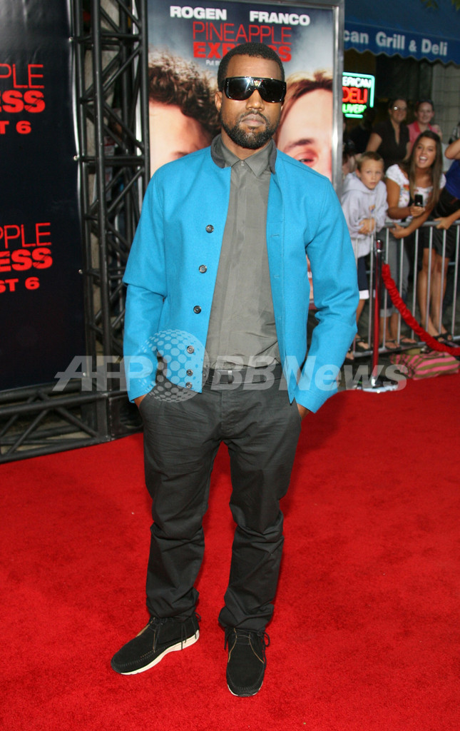 映画「パイナップル・エクスプレス」のプレミア上映会に登場したカニエのこの日の装いは、鮮やかな色合いが美しいイヴ・サンローランのブルーのジャケット。普段からおしゃれに気遣う彼のセンスがメディアから認められるのに、そう時間はかからなかったようだ。(c)Fashion Week Daily/MODE PRESS