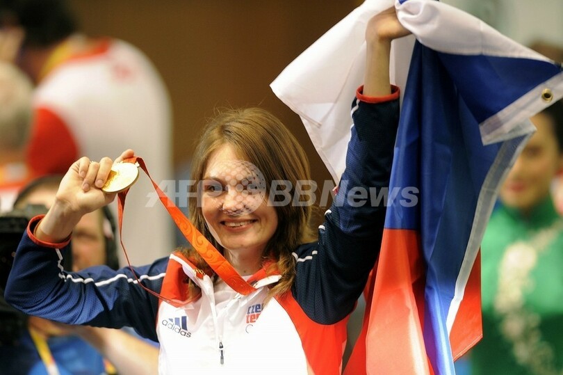 また、銀メダルはロシアのリュボフ・ガルキナ(Lioubov Galkina)が獲得し、銅メダルはクロアチアのスニェヤナ・ペイチッチ(Snjezana Pejcic )が獲得した。(c)AFP