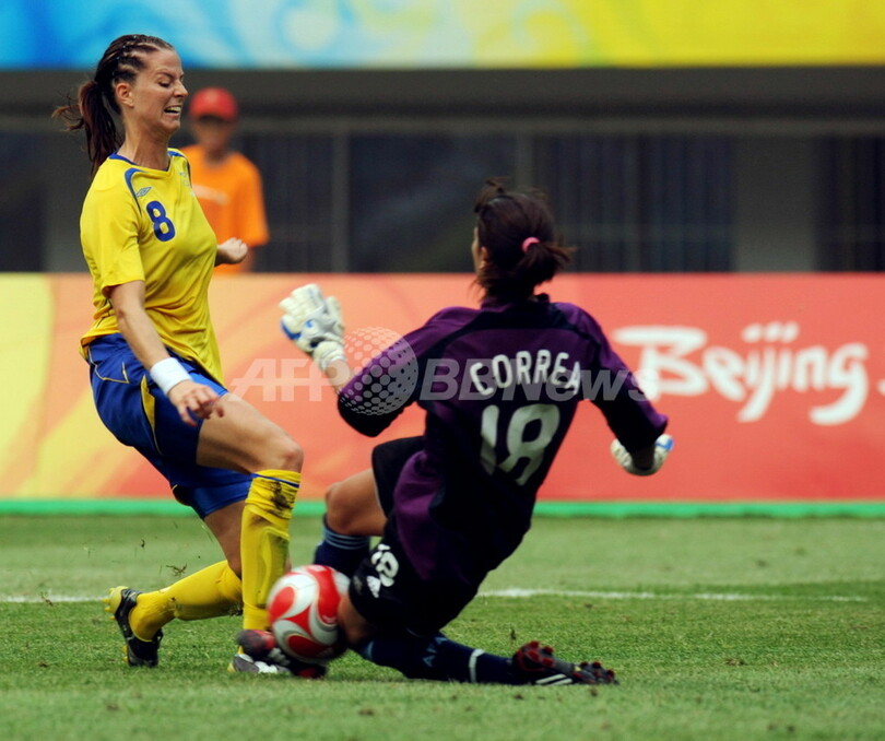 五輪 スウェーデン アルゼンチン下し大会初勝利 2008年8月9日 21:21 発信地:天津/中国 [ 中国・台湾 中国 ] このニュースをシェア ‹ › ❮ 7/7 ❯ アルゼンチンのGKバニナ・コレア(%%Vanina Correa%%、右)とボールを競るスウェーデンのロッタ・シェリン(%%Lotta Schelin%%)。(2008年8月9日撮影)(c)AFP/HOANG DINH Nam 画像作成中 ! 【8月9日 AFP】北京五輪、女子サッカー・一次リーグE組、スウェーデン対アルゼンチン。試合はスウェーデンが1-0でアルゼンチンを下し、大会初勝利を挙げた。(c)AFP 五輪 一覧へ> メディア・報道関係・法人の方向け 写真・動画 購入のお問合せ>
