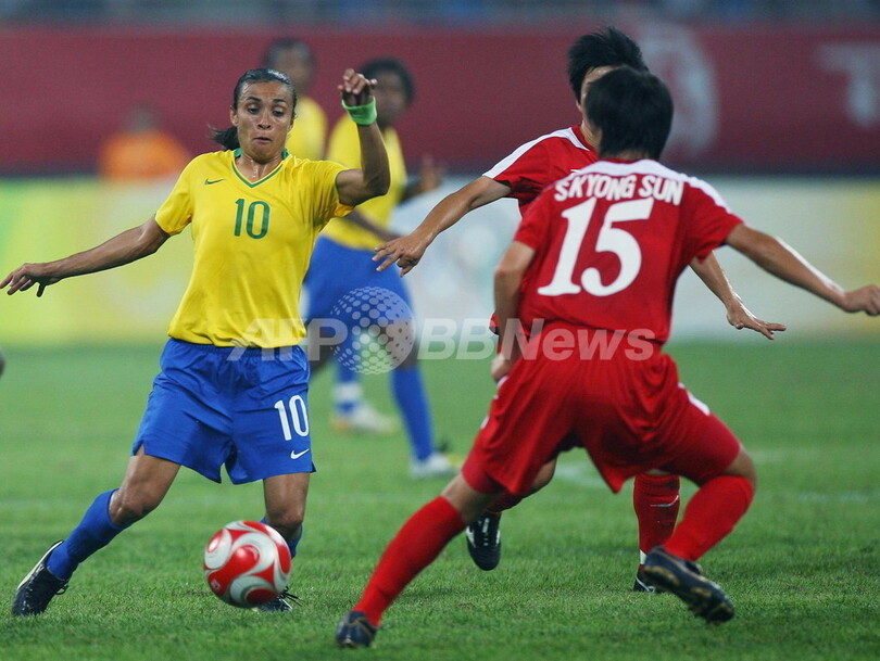 五輪 ブラジル 北朝鮮下し大会初勝利を挙げる 2008年8月9日 22:50 発信地:瀋陽/中国 [ 中国・台湾 中国 ] このニュースをシェア ‹ › ❮ 4/4 ❯ 北朝鮮のソン・ジョンスン(%%Song Jong Sun%%、右)をかわしにかかるブラジルのマルタ(%%Marta%%)。(2008年8月9日撮影)(c)AFP 画像作成中 ! 【8月9日 AFP】北京五輪、女子サッカー・一次リーグF組、ブラジル対北朝鮮。試合はブラジルが2-1で北朝鮮を下し、今大会初勝利を挙げた。(c)AFP 五輪 一覧へ> メディア・報道関係・法人の方向け 写真・動画 購入のお問合せ>
