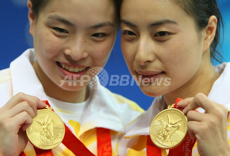 【8月10日 AFP】北京五輪第3日、飛び込み・女子シンクロ3メートル板飛び込み決勝。中国の郭晶晶(Guo Jingjing)/呉敏霞(Wu Minxia)組は、343.50点を記録して優勝を果たし、金メダルを獲得した。2位にはロシアのユリア・パハリナ(Julia Pakhalina)/アナスタシア・ポズニャコワ(Anastasia Pozdnyakova)組が、3位にはドイツのディッテ・コツィアン(Ditte Kotzian)/ハイケ・フィッシャー(Heike Fischer)組が入った。(c)AFP