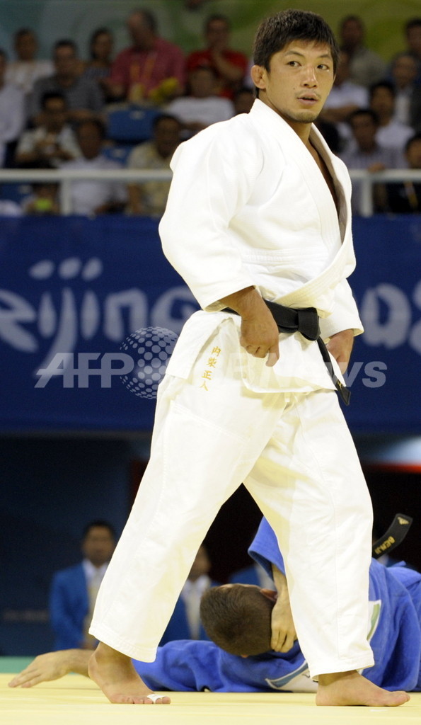 【8月10日 AFP】(写真追加、記事更新)北京五輪第3日、柔道・男子66キロ級決勝。日本の内柴正人(Masato Uchishiba)は、フランスのバンジャマン・ダルベレ(Benjamin Darbelet)と対戦。試合は内柴が一本勝ちを収め、金メダルを獲得した。