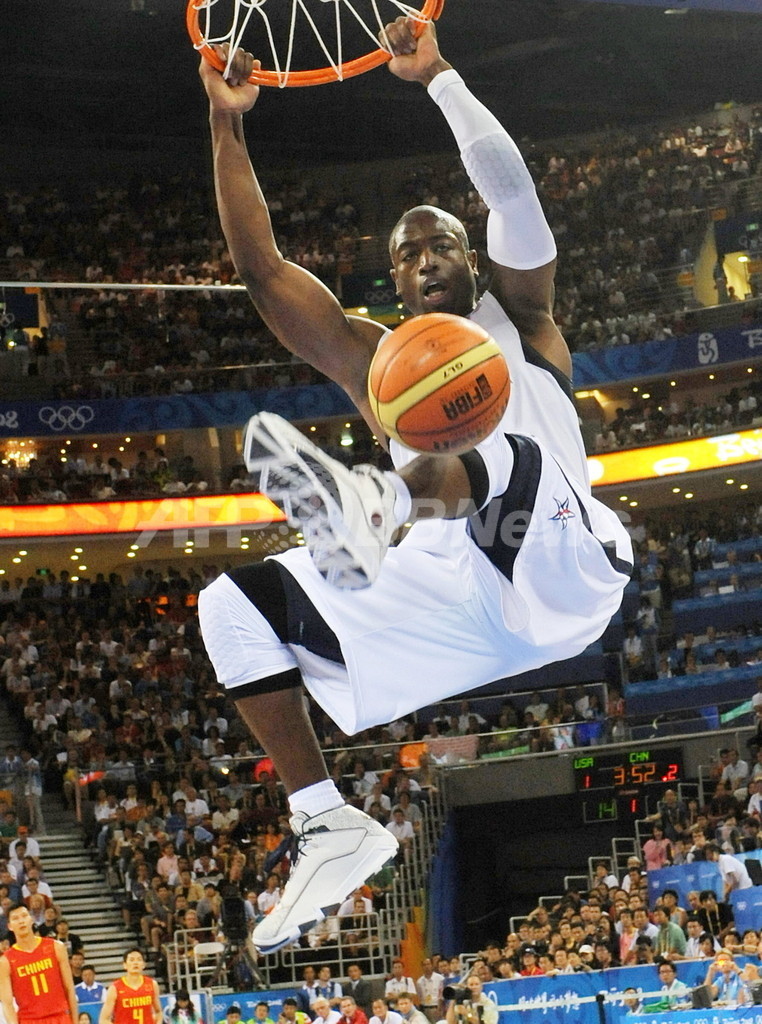 米国はドウェイン・ウェイド(Dwyane Wade)が19得点を記録したのをはじめ、レブロン・ジェームズ(LeBron James)が18得点、コービー・ブライアント(Kobe Bryant)とドワイト・ハワード(Dwight Howard)がそれぞれ13得点を記録し、好調な立ち上がりを見せた中国を下した。(c)AFP/Jim Slater