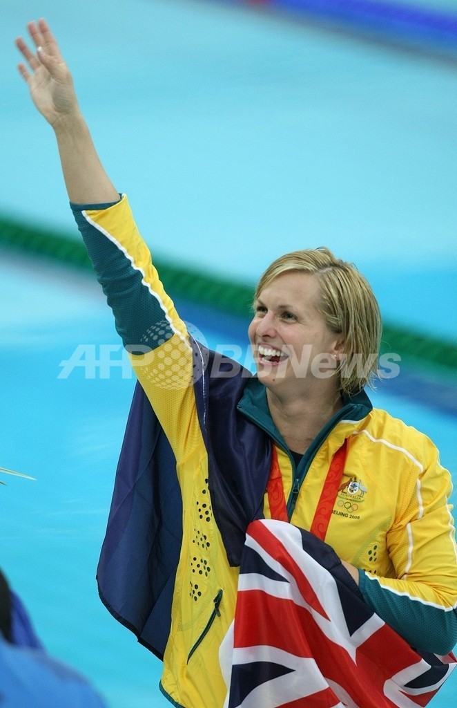 【8月11日 AFP】(記事更新、写真追加)北京五輪第4日、競泳・女子100メートルバタフライ決勝。オーストラリアのリスベス・トリケット(Lisbeth Trickett)は、56秒73を記録して優勝を果たし、五輪の個人種目で自身初となる金メダルを獲得した。