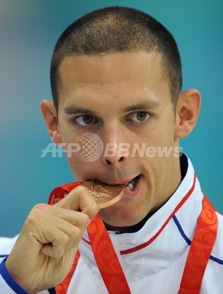 銀メダルは59秒20を記録したノルウェーのアレクサンダー・ダーレ・オーエン(Alexander Dale Oen)が獲得し、銅メダルは59秒37を記録したフランスのユーグ・デュボス(Hugues Duboscq)が獲得した。(c)AFP