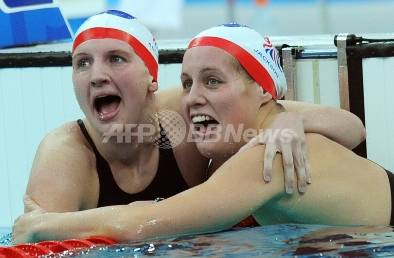五輪 アドリントン 女子400メートル自由形で金メダル 2008年8月11日 13:59 発信地:北京/中国 [ 中国・台湾 中国 ] このニュースをシェア ‹ › ❮ 1/3 ❯ 北京五輪・競泳女子400メートル自由形を制し、3位に入ったジョアンナ・ジャクソン(右)と共に喜びを分かちレベッカ・アドリントン。(2008年8月11日撮影)(c)AFP/FRANCOIS-XAVIER MARIT 画像作成中 ! 【8月11日 AFP】(写真追加)北京五輪第4日、競泳・女子400メートル自由形決勝。英国のレベッカ・アドリントン(Rebecca Adlington)は、4分03秒22を記録して優勝を果たし、金メダルを獲得した。2位には4分03秒29を記録した米国のケイティ・ホフ(Katie Hoff)が、3位には4分03秒52を記録した英国のジョアンナ・ジャクソン(Joanne Jackson)が入った。(c)AFP 五輪 一覧へ> メディア・報道関係・法人の方向け 写真・動画 購入のお問合せ>
